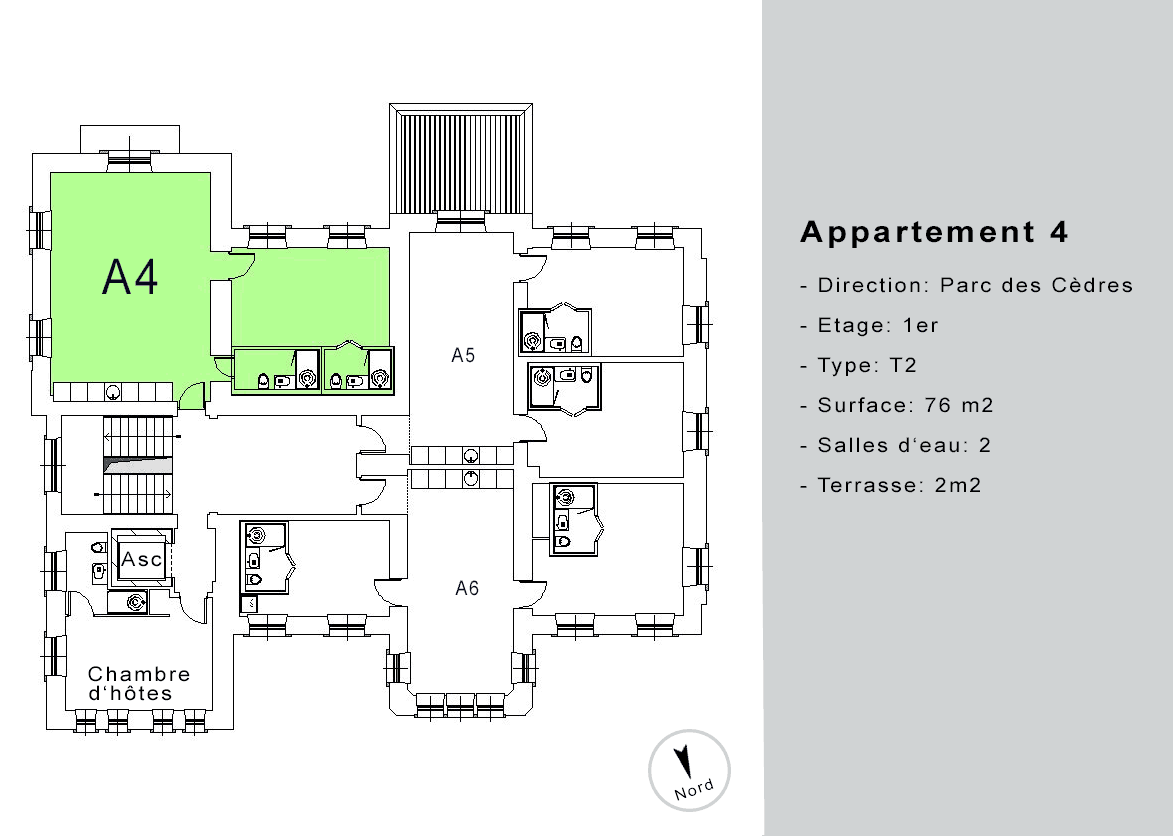| Appartement A4 meublé | 1 | T2 | 76 | 2m2 | loué | ![]() |