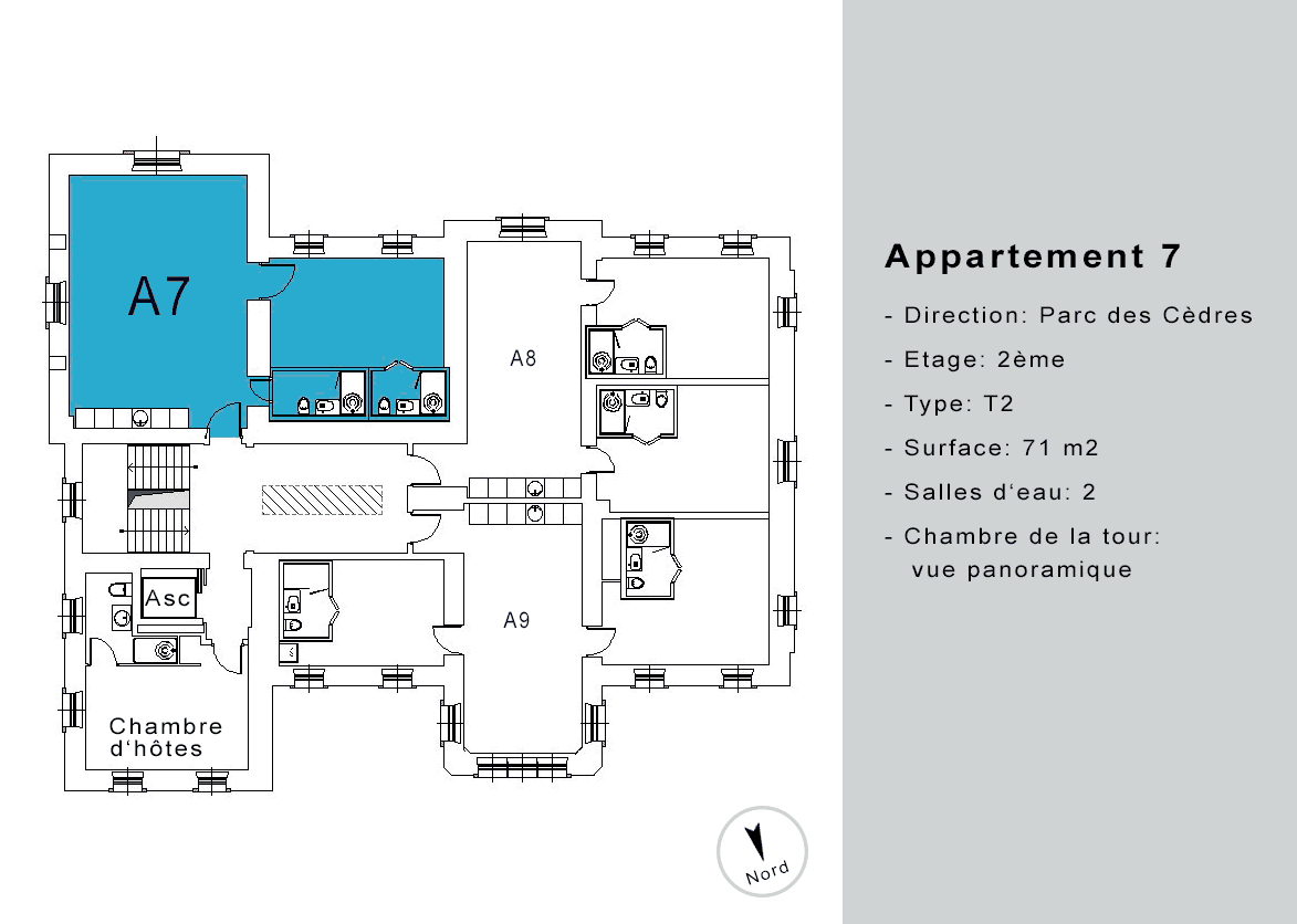 | Appartement A7 | 2 | T2 | 71 | - | loué | ![]() |