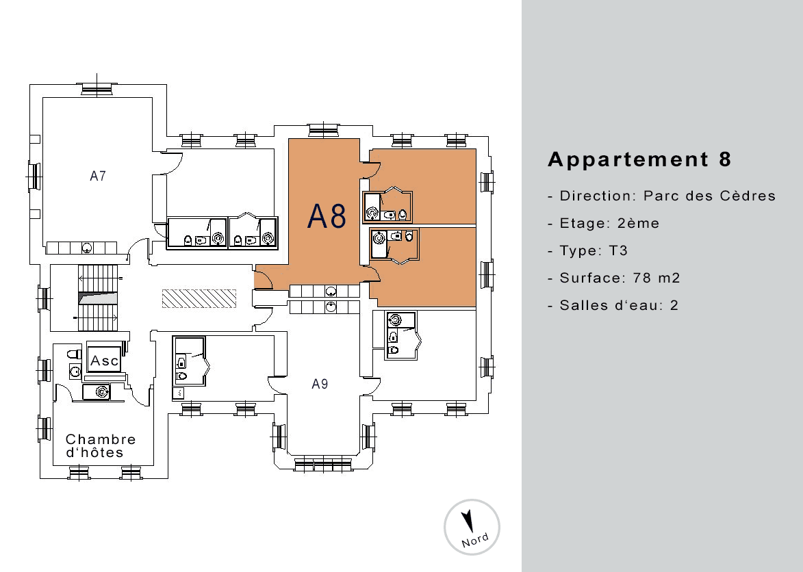 | Appartement A8 meublé | 2 | T3 | 78 | - | à louer | ![]() |